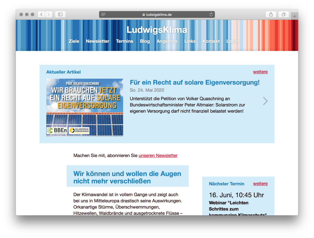 Website für die lokale Gruppe von am Klimaschutz interessierten Einzelpersonen in Ludwigsburg. Aus den parents4future heraus gegründet.