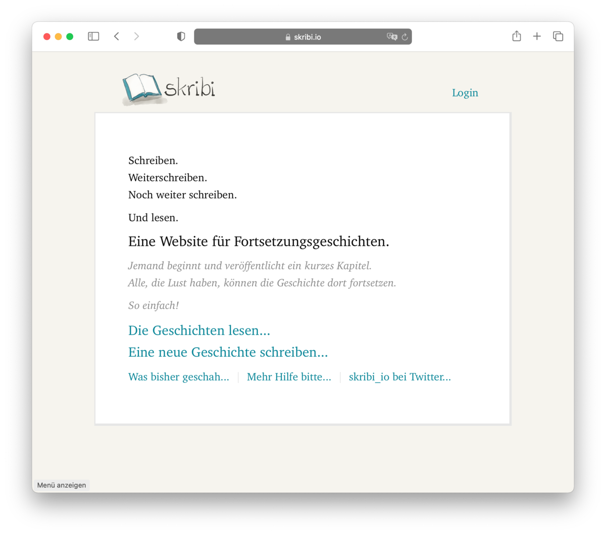 Hier können Anfänger*innen und Expert*innen ihre Geschichten ausprobieren und sich gegenseitig inspirieren. Co-Kreation beim Schreiben macht Spass. Die Resultate kann man bei skribi lesen.